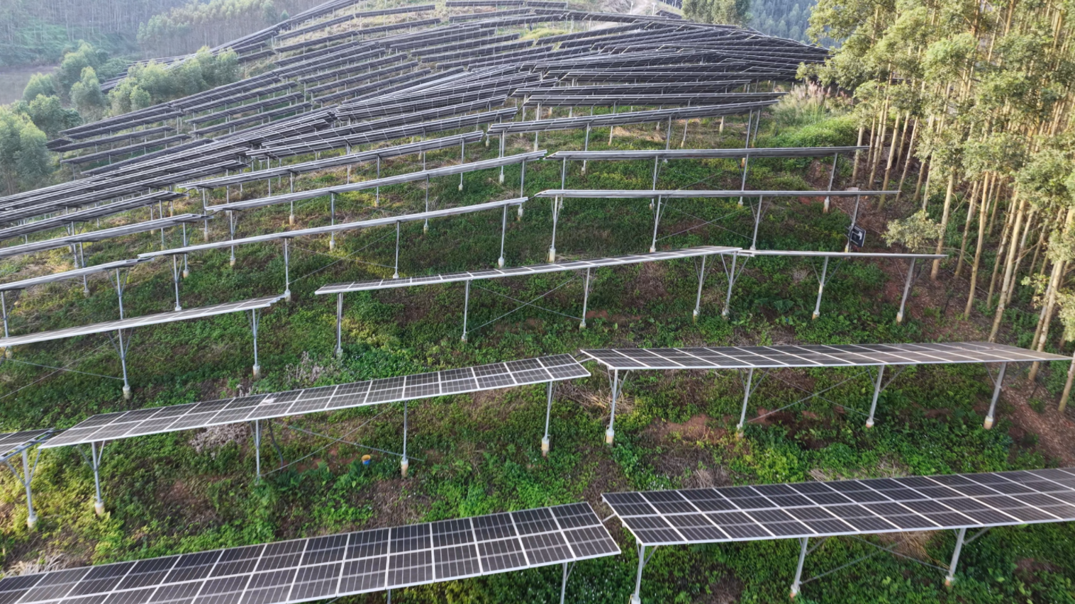 •生态效益与社会效益显著:电站每年可输送大量清洁电力,有效减少区域碳排放;同时,板下土地用于发展特色农业,形成了 “光伏发电收入+农产品销售收入” 的双重收益模式,显著提升了土地利用效率和农民收入。该项目成功实践了在湿热山区大规模建设农光互补电站的可行性,其通过高耐久材料保障安全、通过科学高度实现真互补的经验,为南方丘陵地区推广“光伏+农业”融合发展提供了可复制、可推广的优质范例。