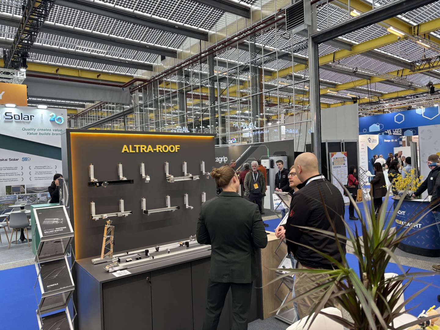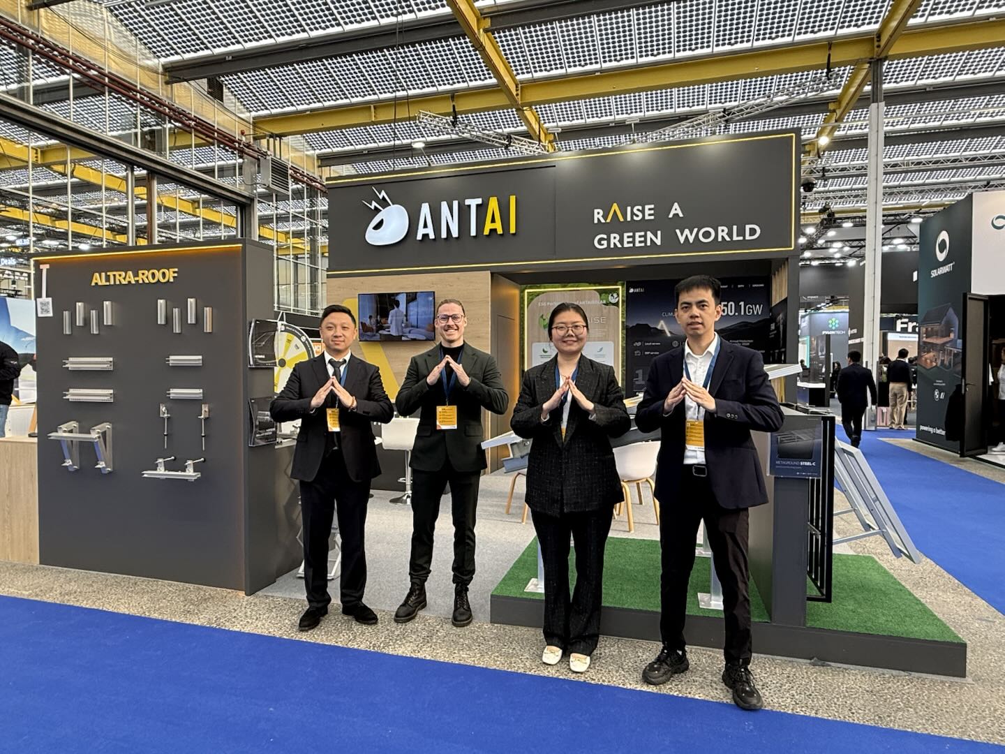 作为本次展会的核心亮点,安泰新能源重点展示了ALTRA-ROOF屋顶光伏支架系列产品。该系列全面覆盖瓦屋顶、平屋顶、彩钢屋顶及阳台等多场景应用,以其快速高效的安装效率和卓越的结构强度,精准契合了欧洲工商业及户用分布式光伏快速增长的需求。